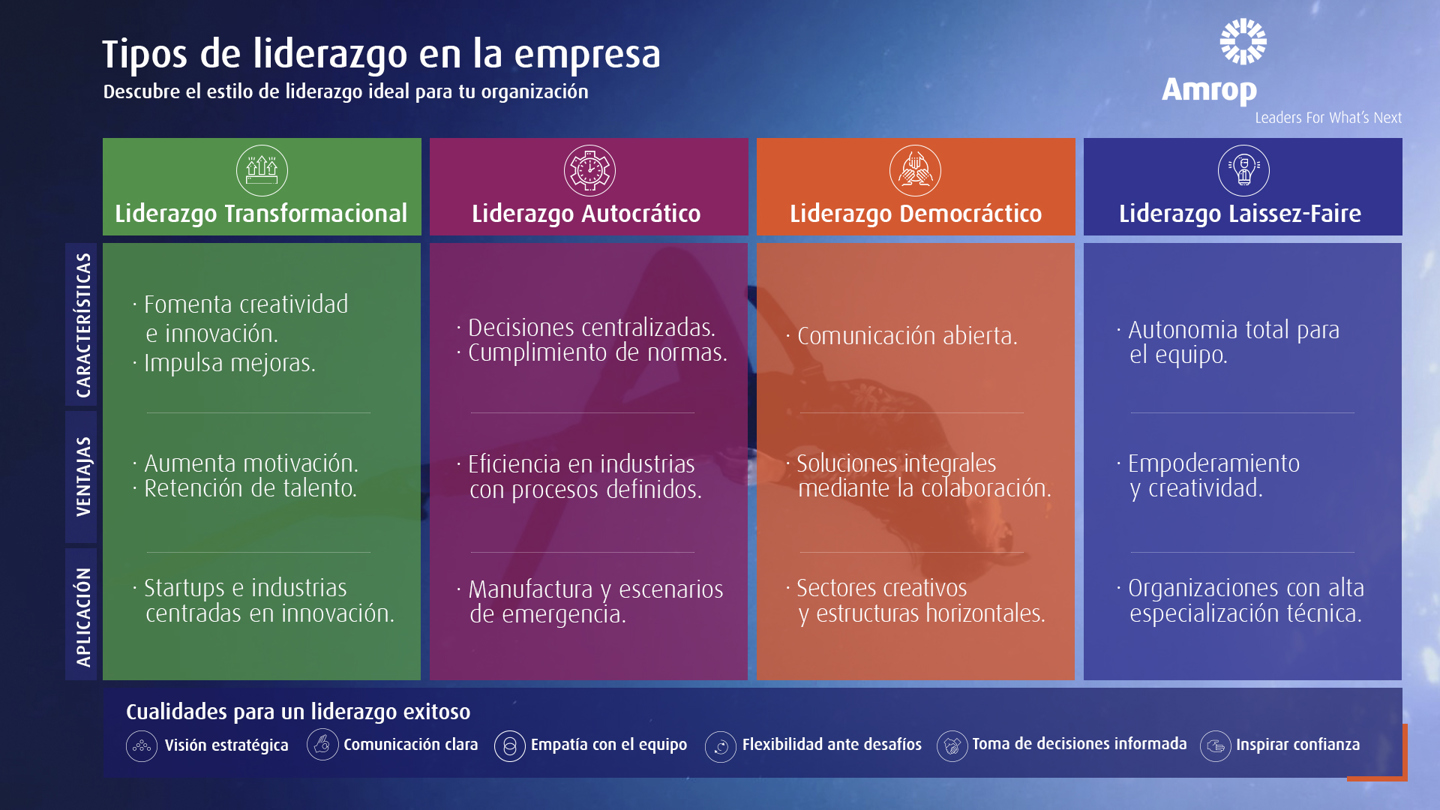 En este artículo exploraremos los principales tipos de liderazgo, cómo identificarlos, cuándo aplicarlos y cómo Amrop España puede ser un aliado estratégico en la búsqueda y desarrollo de líderes empresariales que impulsen el rendimiento corporativo.